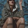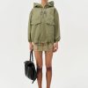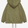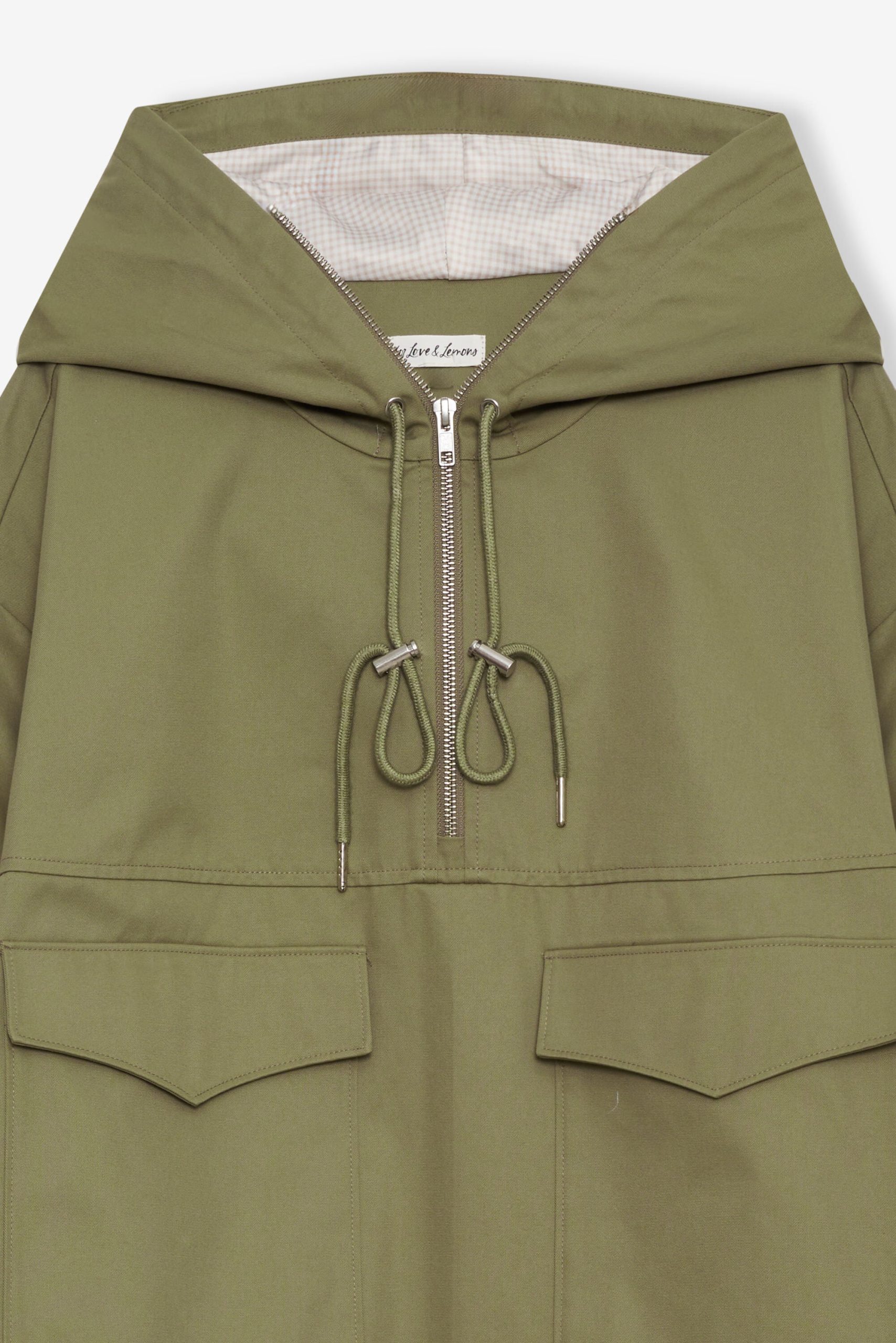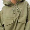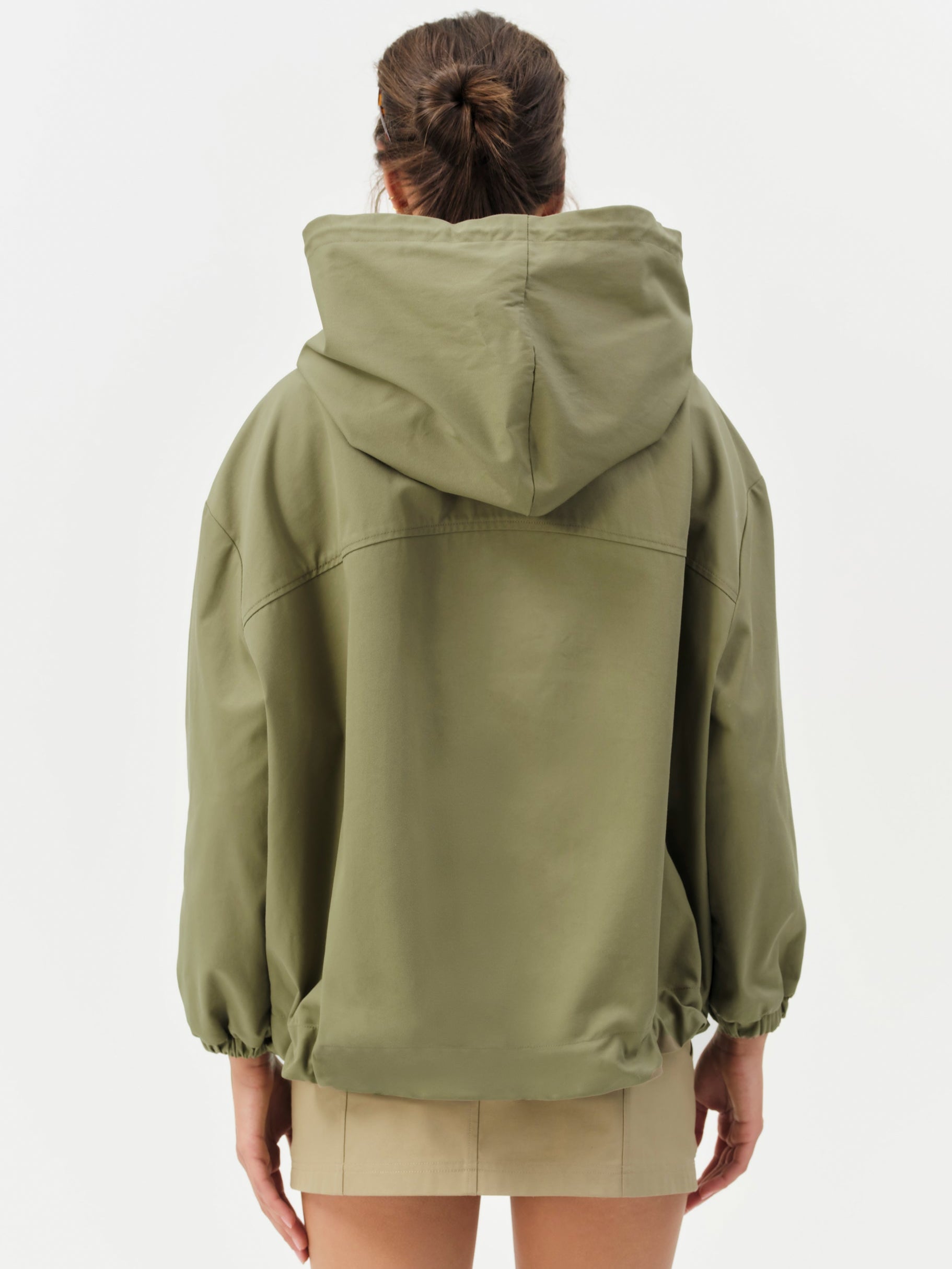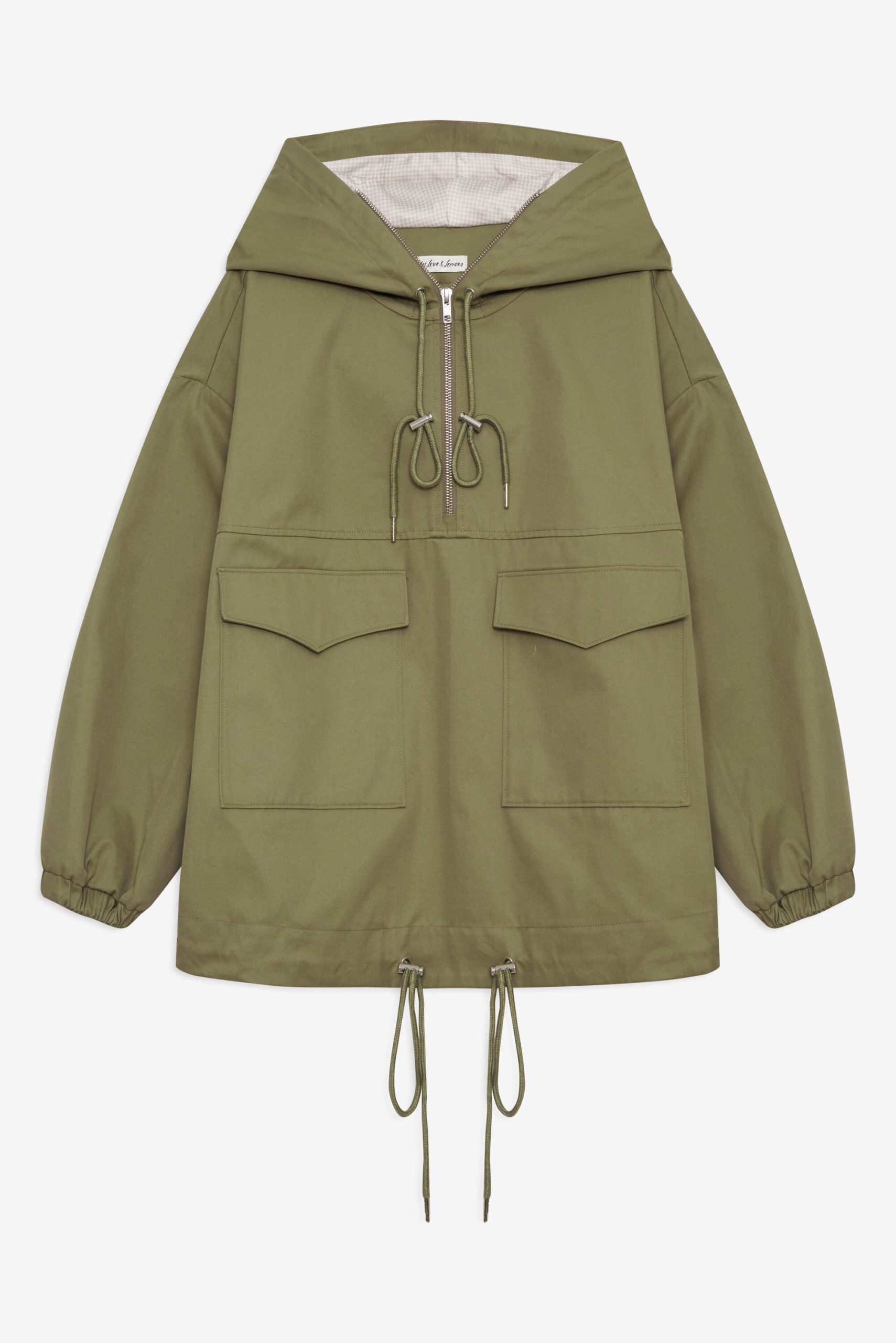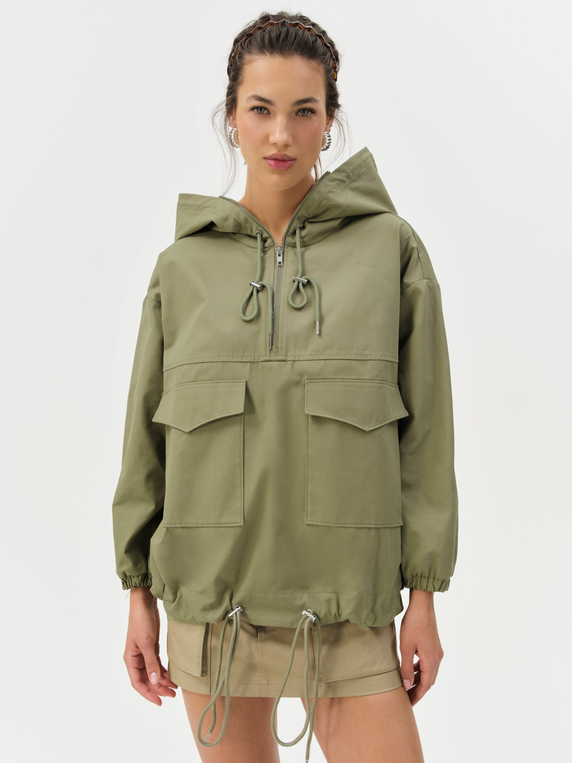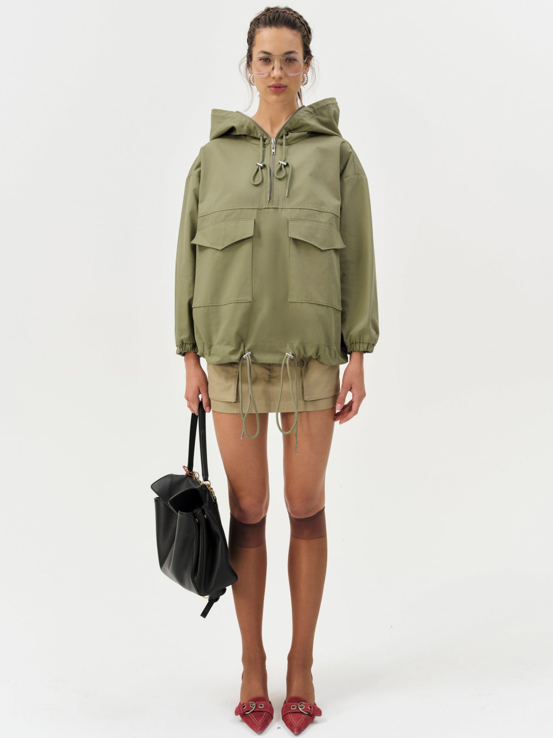 Layer your way into the next season with the Alessia pullover green jacket—a utility jacket crafted in a classic twill and gingham satin, featuring drop shoulders, a drawstring waist, half zipper, and functional front patch pockets.