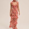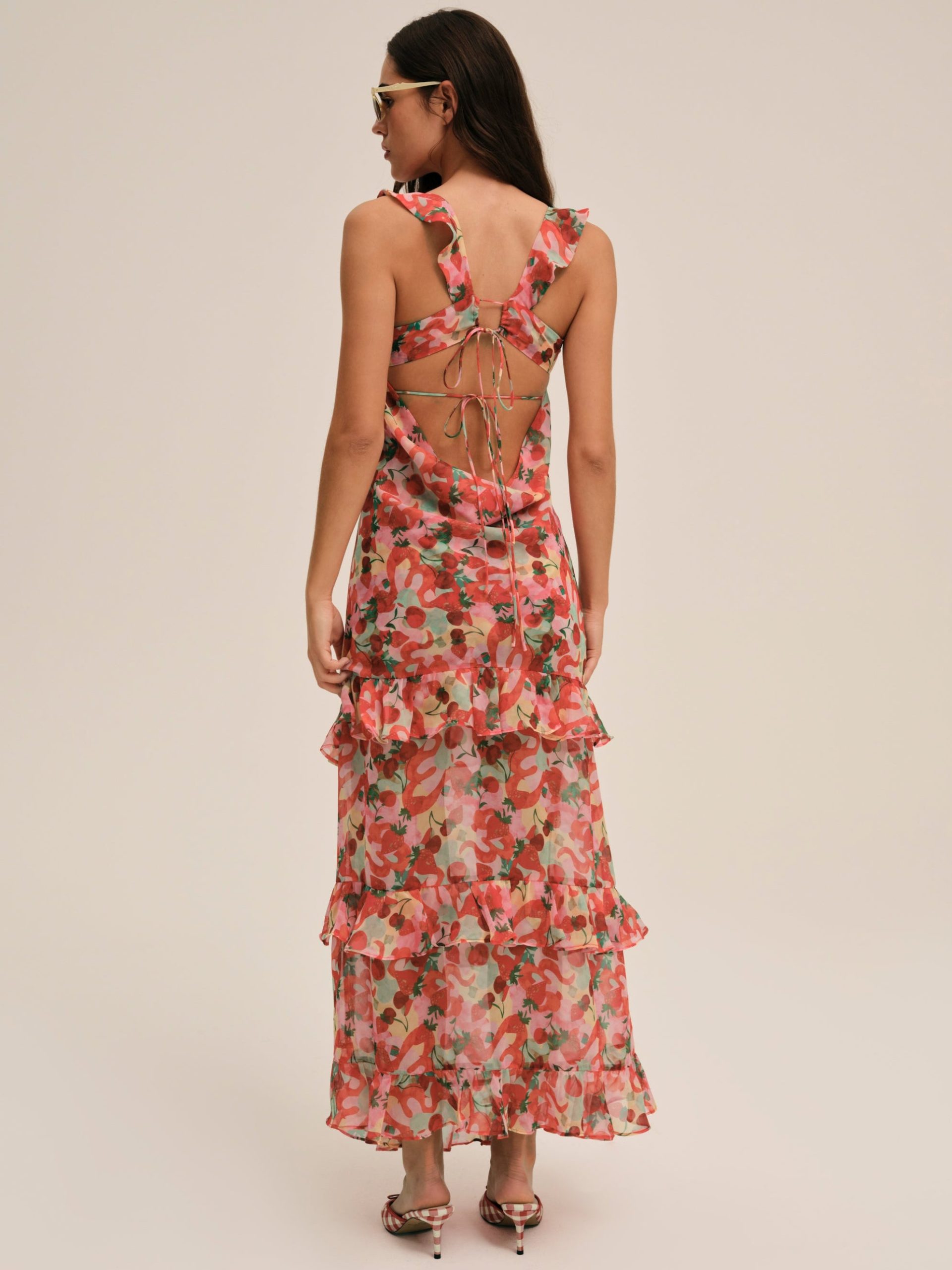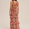 Embrace the romance of a Riviera escape with the Ambrosia red maxi dress–a tiered ruffled maxi dress designed for long lunches and late nights. This bias cut maxi dress features a ruffled scoop neckline and shoulder straps, a functional keyhole back, and an open cowl neck back with functional tie.