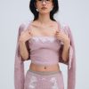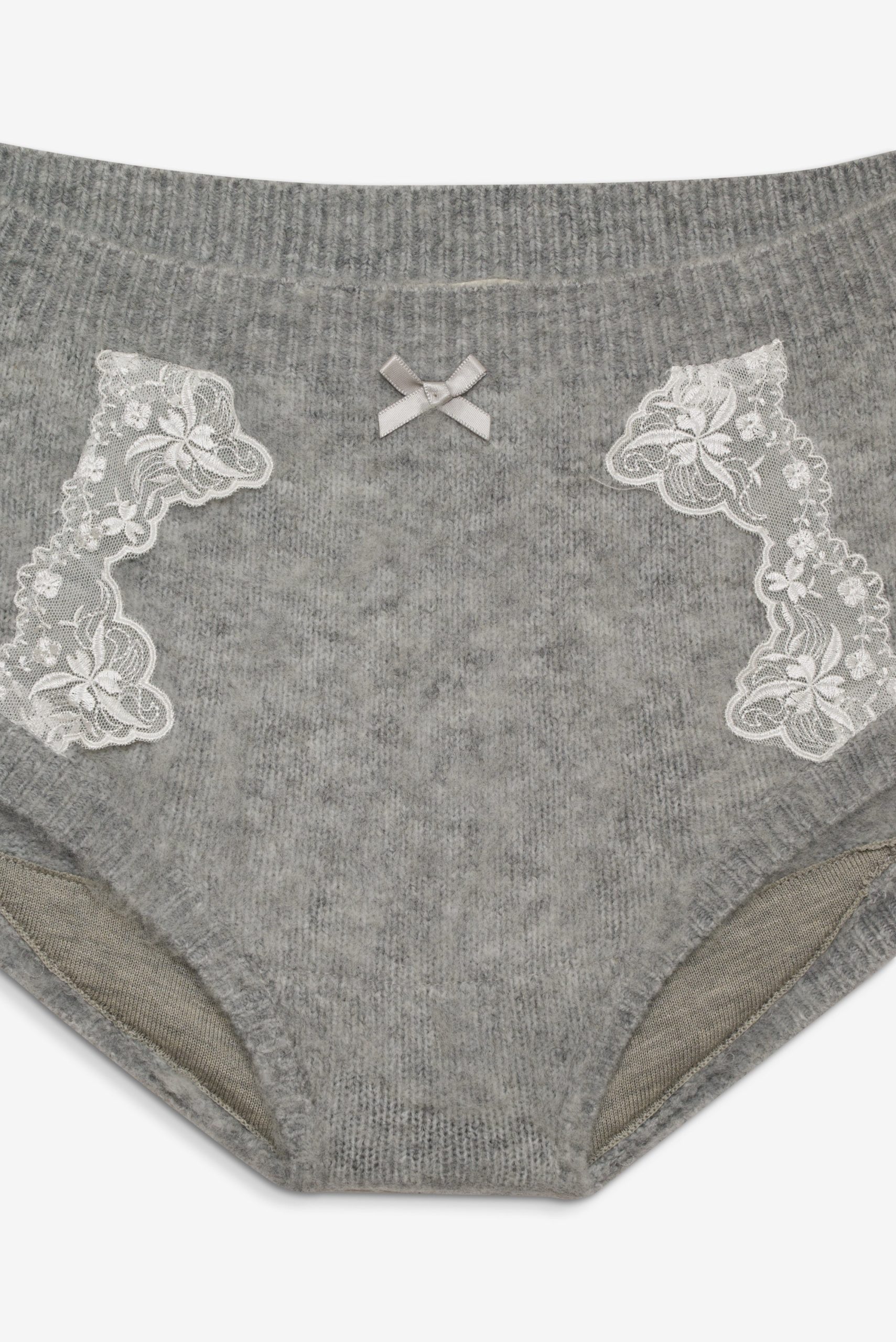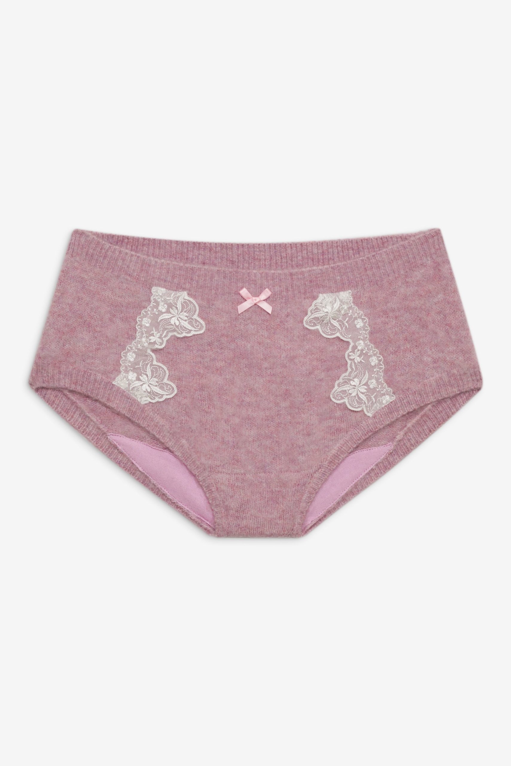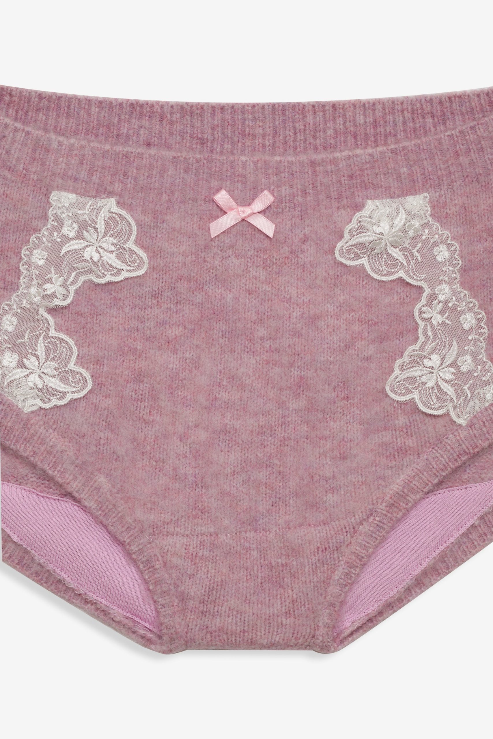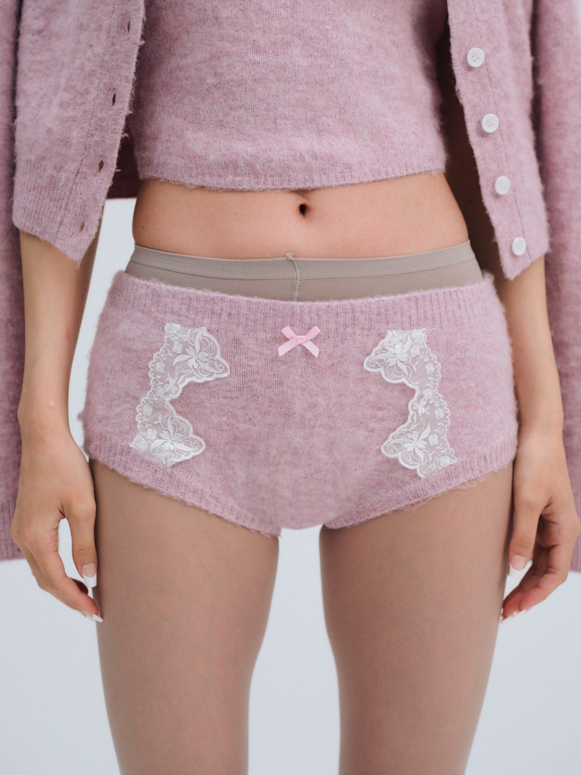 For Love & Lemons Essentials: Crafted in the softest mohair, the Arinah pink knit short is your new cozy and chic everyday uniform. Featuring decorative scalloped lace along the front of boyshort, and a satin bow at the center-front—this knitted short can be paired with the Arinah Tank or Arinah Cardigan for a sexy and sophisticated co-ord set.