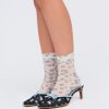 Designed for the Muse who lives in a world of her own, the Chateau black mule evokes the designs of a bygone era with its romantic blue floral print and satin bow. Pair these mule heels with floral socks from our pre-fall collection for an alluring look.
