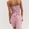 Ultra-feminine and hopelessly romantic, the Claudia Rose Lace strapless mini dress has a timelessly chic feel. Crafted in a sweet lace and lightweight chiffon, this corset mini dress features a sweetheart neckline, underwire cups, boned bodice, and layered chiffon skirt. It’s completed with a lace trim and a dramatic back waist bow.