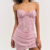 Ultra-feminine and hopelessly romantic, the Claudia Rose Lace strapless mini dress has a timelessly chic feel. Crafted in a sweet lace and lightweight chiffon, this corset mini dress features a sweetheart neckline, underwire cups, boned bodice, and layered chiffon skirt. It’s completed with a lace trim and a dramatic back waist bow.