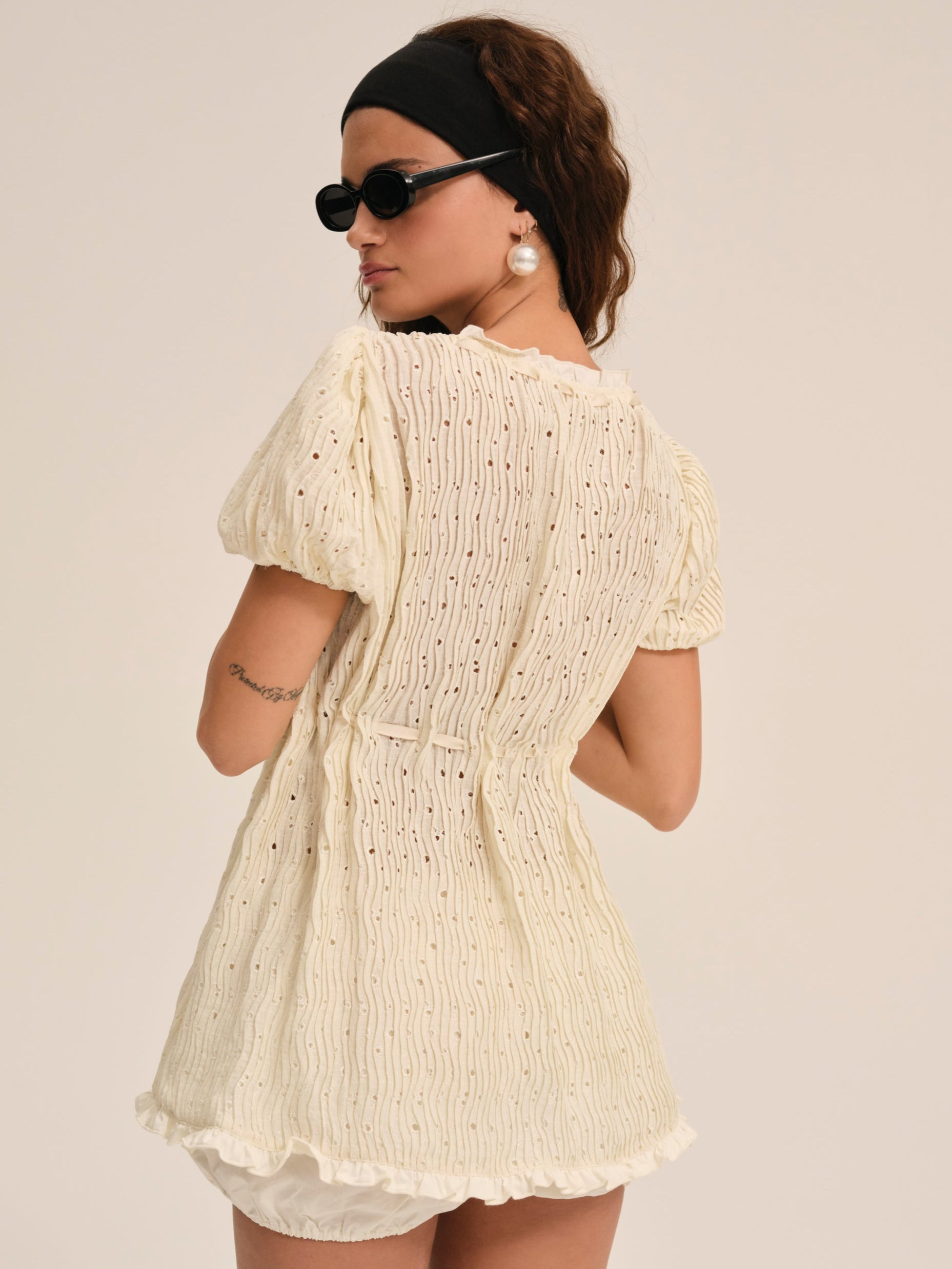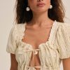 For open-air drives, and long, lazy afternoons by the water, the Erika Babydoll two piece set makes for an ultra-chic summer ensemble. This cream co ord set features a puff sleeve open-front tying top and elasticated bloomer shorts for an effortless look.