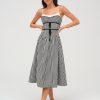 Effortless charm meets vintage inspiration with the Georgia gingham micro mini skirt–a short skirt that sits at the high-waist. Adorned with lace eyelet trims along the hem and a center-front waist bow appliqué, this micro skirt also features side pockets and an interior built-in panty.