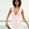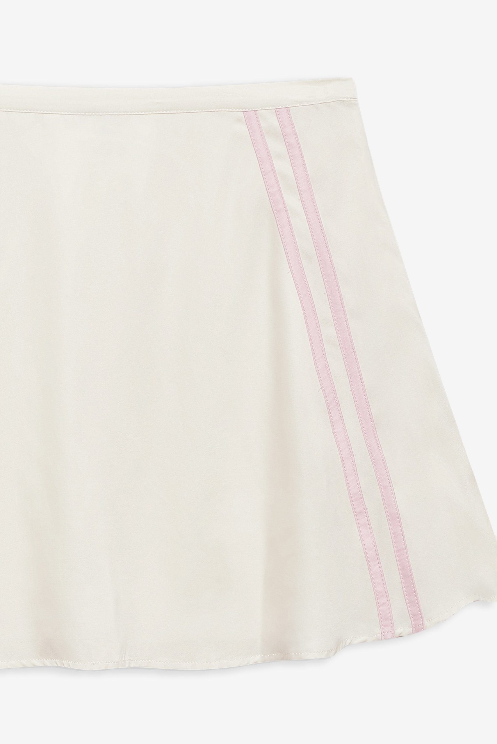 For the preppy polished muse—the Kimmy pnk tennis skirt is cut to sit at natural waist with a flare fit and spotlights two contrast stripes at the hips. This retro-inspired mini skirt is crafted in cupro for a silky hand-feel.