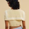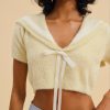 Prepare to meet your match with the Kimmy sailor collar sweater top. This ultra-preppy yellow cropped sweater is crafted in a fuzzy faux mohair knit and charms with its sailor style striped collar, deep v-neckline, and dainty functional bow tie at front neck.