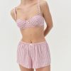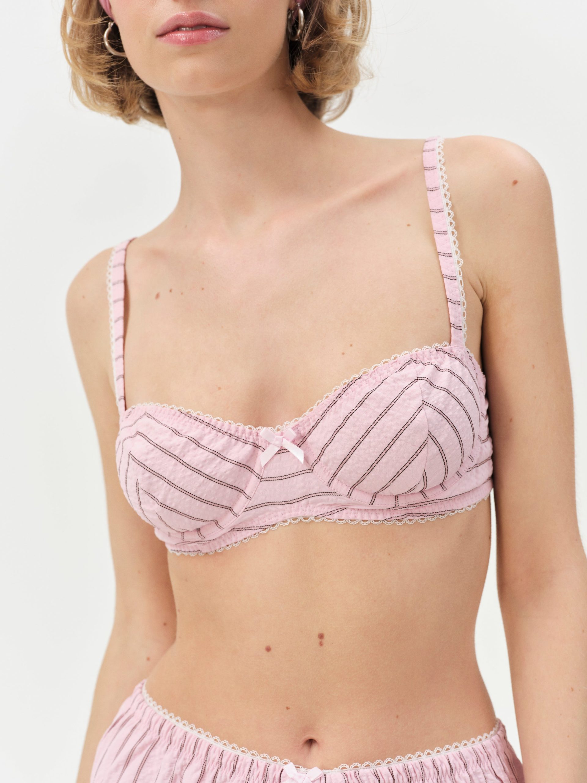 For the cutest stay-at-home uniform, the Mindy unlined bra makes for an effortlessly chic look. Crafted in a classic seersucker stripe, this pink bra spotlights underwire cups and is adorned with picot trims and a decorative bow at front. Pair with the Mindy Boxer Short for a complete co-ord look.