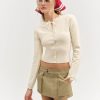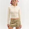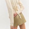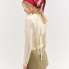 Embrace your soft side with the Naomi cream cardigan—a fitted cardigan with a functional button-down front, scalloped neckline and functional ties at neckline and back waist.