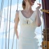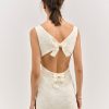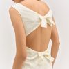 A playful nod to a timeless aesthetic, the Rosie Jacquard cream mini dress exudes vintage charm with its boat neckline and keyhole cut-out at the bust. This open back mini dress has a fitted bodice and is adorned with decorative bows throughout.