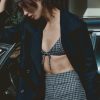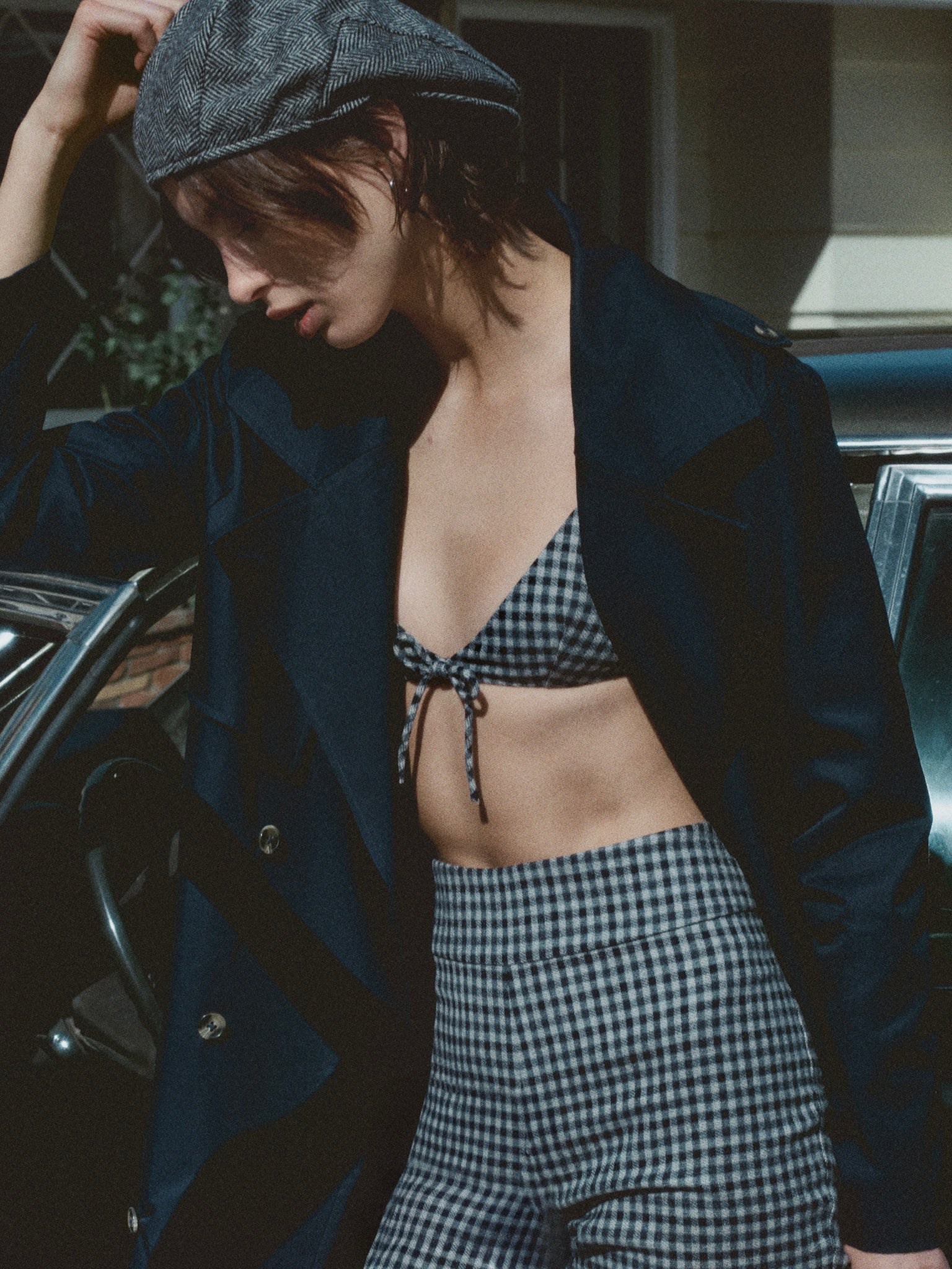 We’re falling for the Savannah capri pants this season—a pair of mid-rise cropped pants crafted in a check suiting fabric with side seam slits and a chic decorative bow.