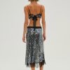 The Christelle black midi skirt is designed to transport you to a stardust covered dance floor. Cut to a high waist, this sequin skirt spotlights an elegant tulle under layer that hangs elegantly below the hem. Style it with the Christelle Bra Top for a statement co-ord set.