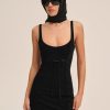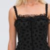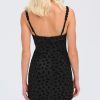 The Claira black mini dress is crafted in an allover flocked Ditsy Rose Fabric, featuring feminine lace and a velvet ribbon trip at the neckline. It’s the perfect little black dress for crisp fall nights.
