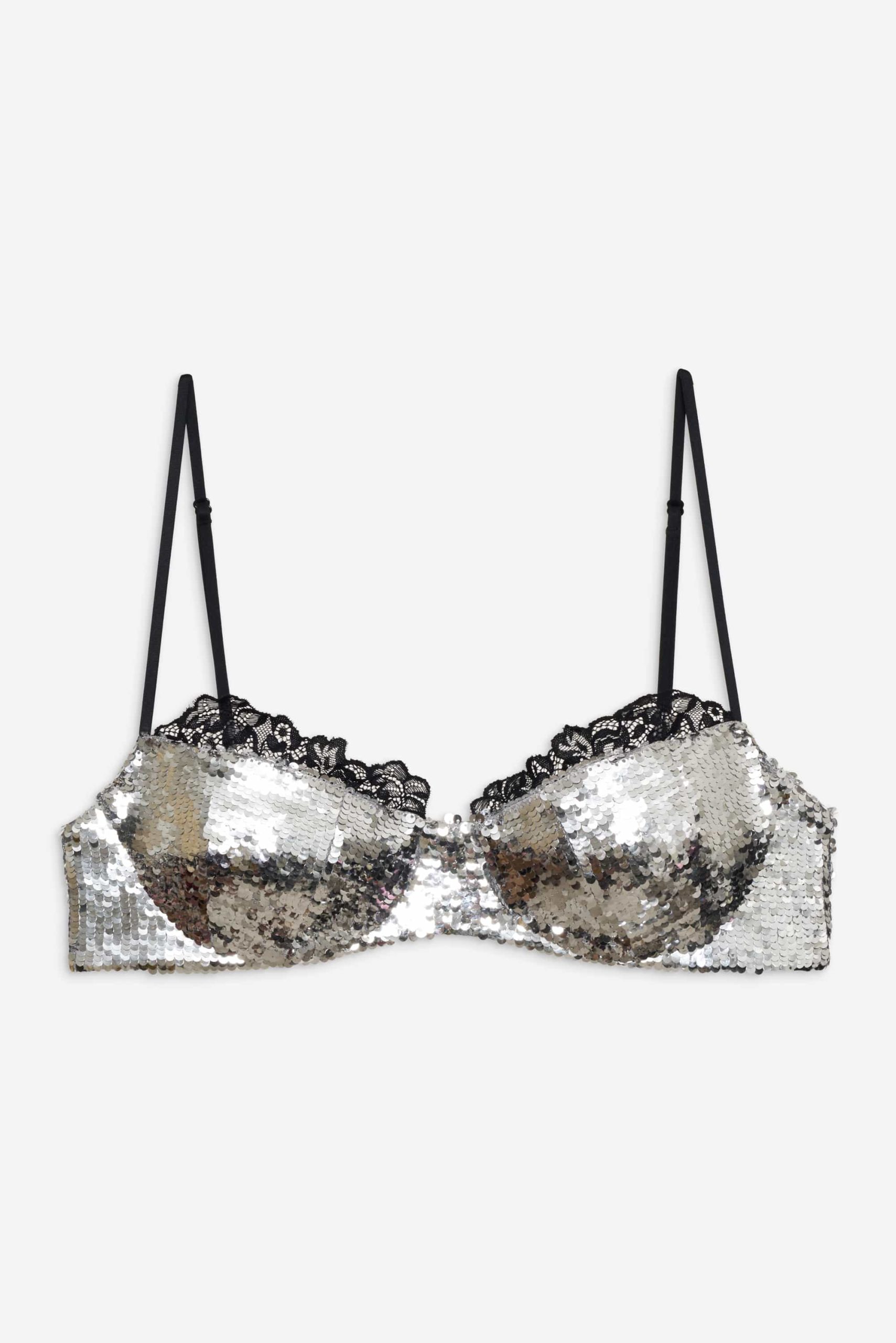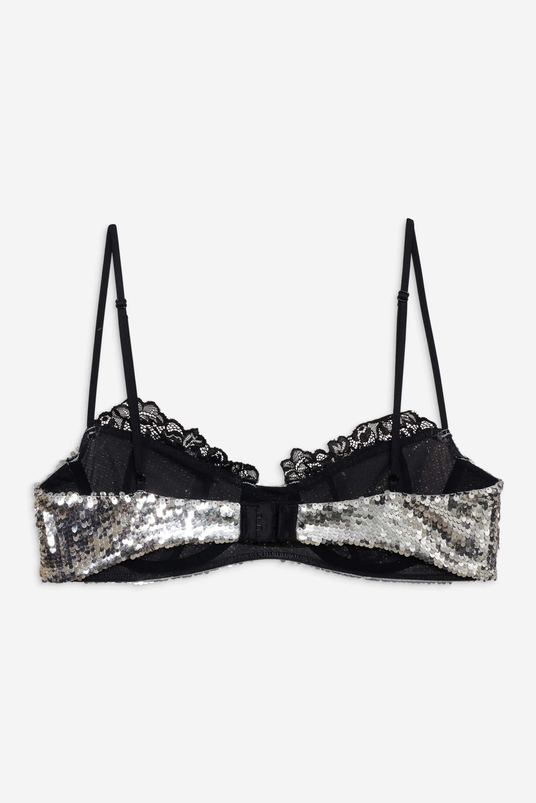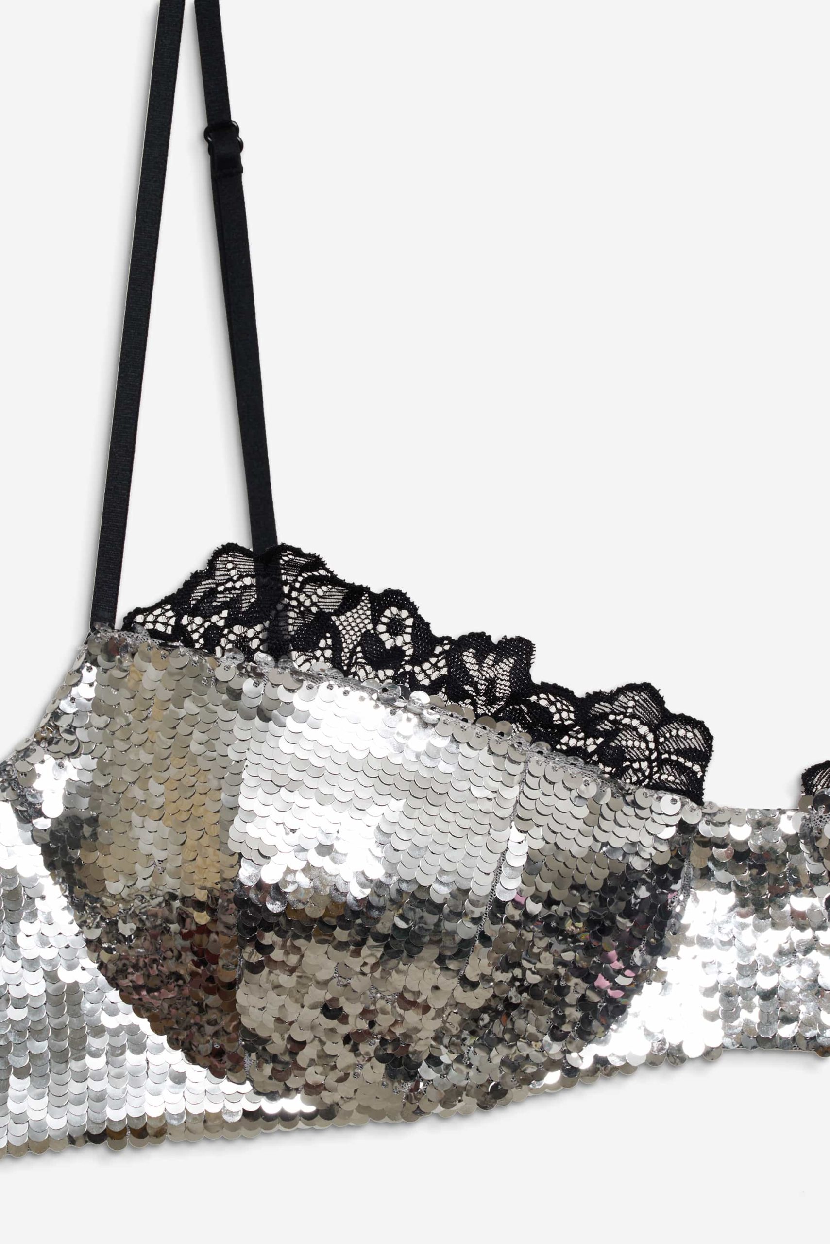 Take the spotlight this sparkle season in the Maia silver bra—a sequin bra designed to be shown off. Featuring intricate scalloped lace trims along the top edge, this underwire bra can be paired with the Maia High Waist Panty for a co-ord lingerie set.