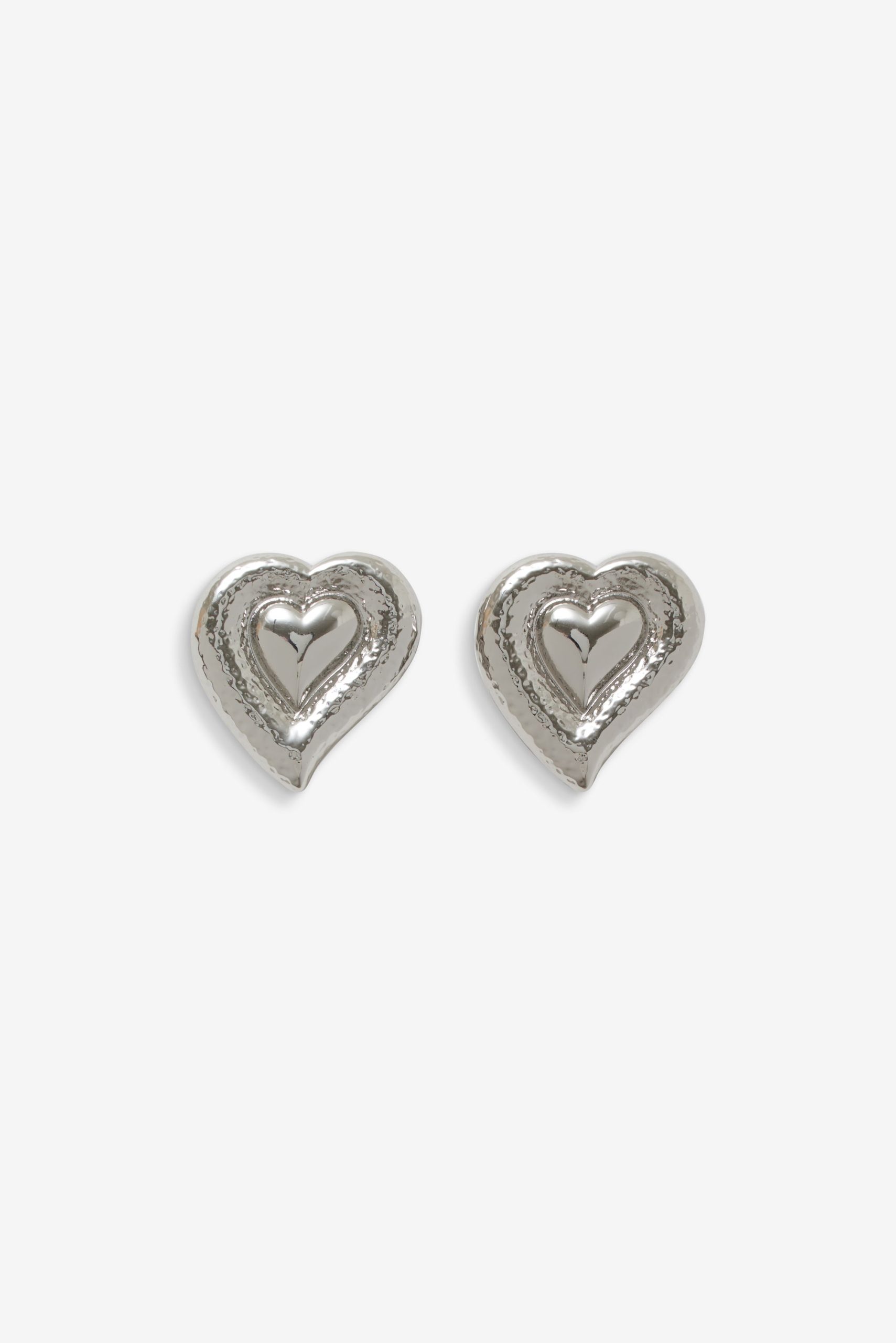For Love & Lemons x Frasier Sterling: Love at first sight. The Prague Earrings are plated in rhodium, water-resistant, and feature a stainless steel earring post.
