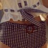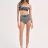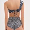 Made for sunlit boardwalks and salty air, the Gingham swim short exudes vintage charm. Crafted in a navy and white puckered gingham, this high-waisted swim bottom features a functional removable belt and a shirred cheeky back panty.