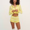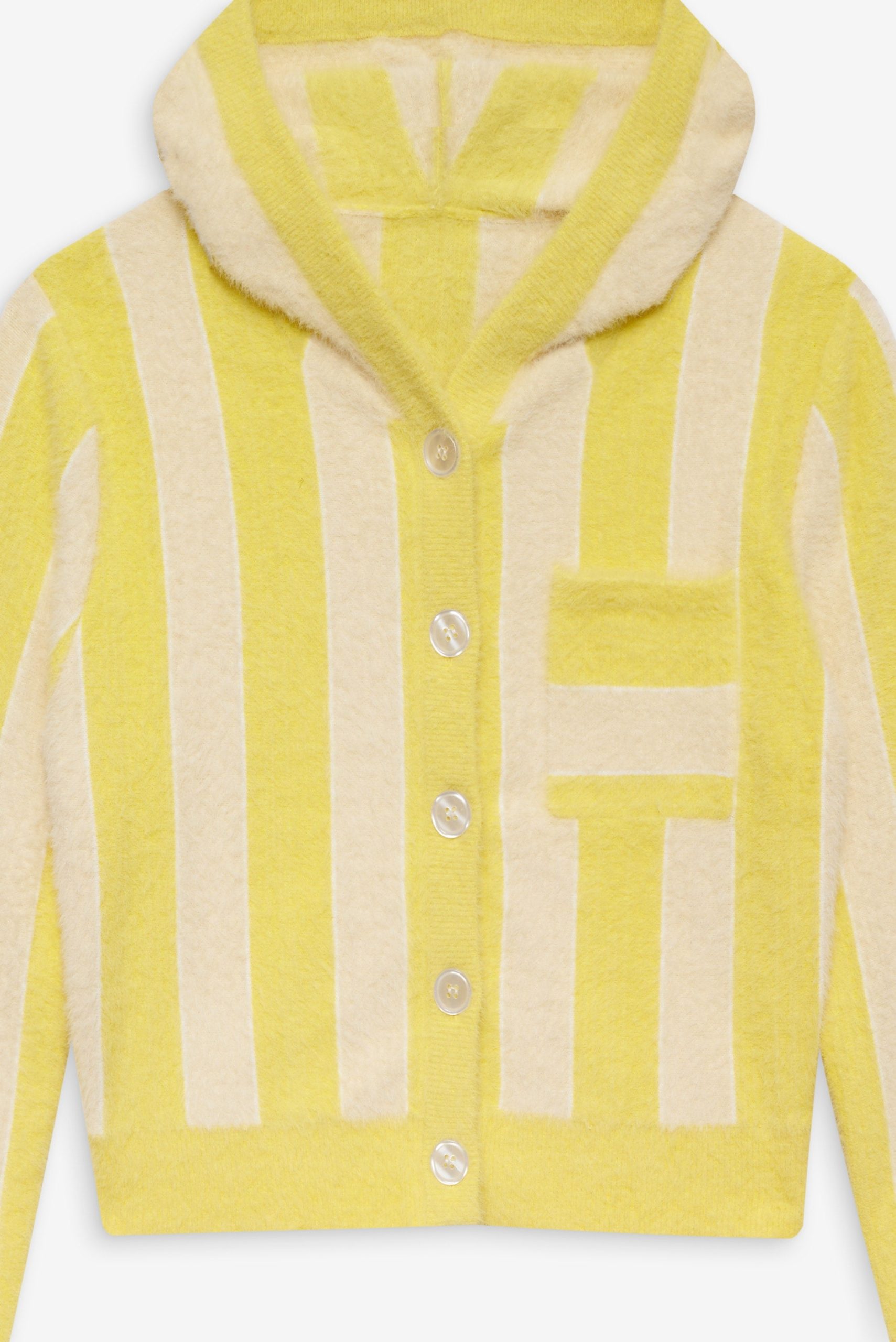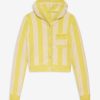 Stop and smell the flowers in the Sleepy Stripe yellow hoodie. A cropped hoodie with a patch pocket at left chest—perfect for crisp morning walks through the garden.