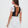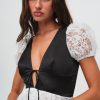 Step into timeless romance with the Sonja cream mini dress. Crafted in satin with a contrasting lace overlay, this enchanting short lace dress will capture hearts with its romantic silhouette, including a plunging V-neckline and puff sleeves.