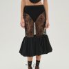 The Sugarplum black lace skirt is the perfect piece for every festive occasion. Cut to an elegant mid-length, this midi skirt is crafted in a sheer lace and features a dramatic bubble hem that flares out.