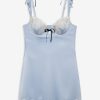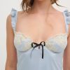 Designed for the ultra-romantic and vintage-loving Muse—the Sweetheart Satin slip dress exudes femininity. This lace slip dress spotlights underwire cups with embroidery appliqués, sweet ruffled straps, and contrast satin bows at center front and back straps.