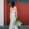 Become the chic minimalist bride with the Claudia Rose lace gown. Crafted in a sheer floral lace, this bridal gown spotlights a shirred bust, fitted bodice, and a contrast jacquard skirt hem.